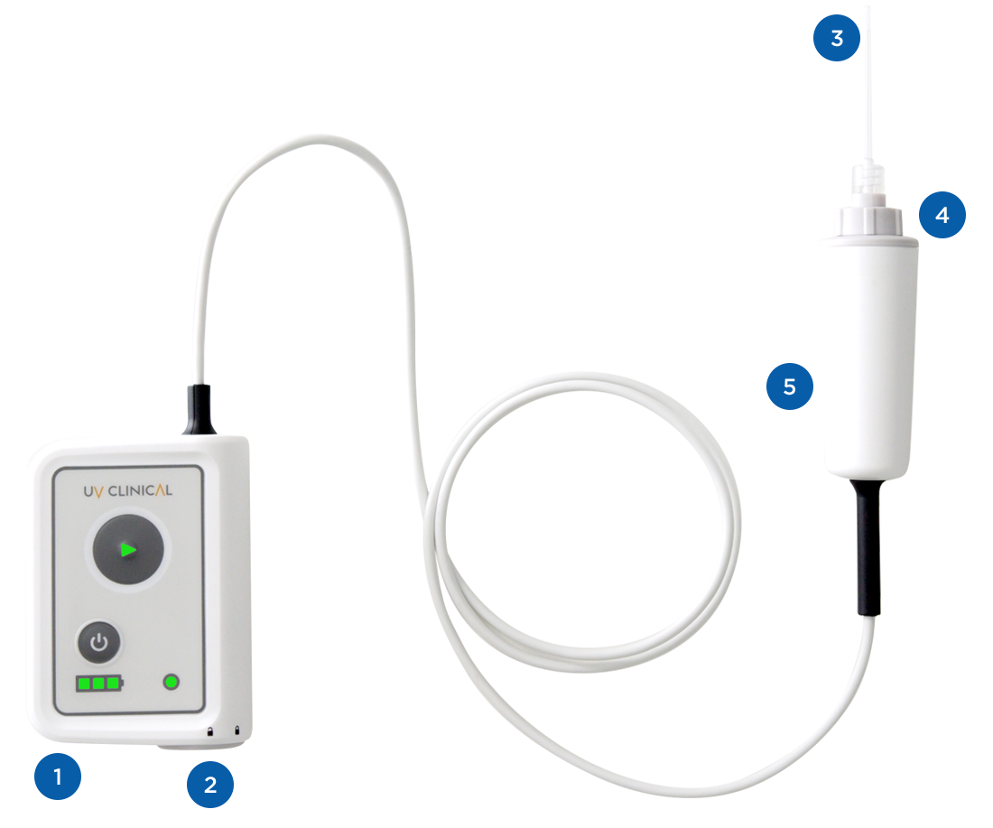 Our Microbial Reduction Medical Device is based on emerging UVC LED (Ultraviolet-C light – Light Emitting Diodes) technology and a patented light guide used to transmit and distribute the UVC light in the lumen of medical tubes such as catheters. UVC light has been used for more than 100 years for disinfection of drinking water. UVC disinfection is a physical process where the UVC light modify/destroys the DNA of microbial cells so that cell multiplication is prevented.